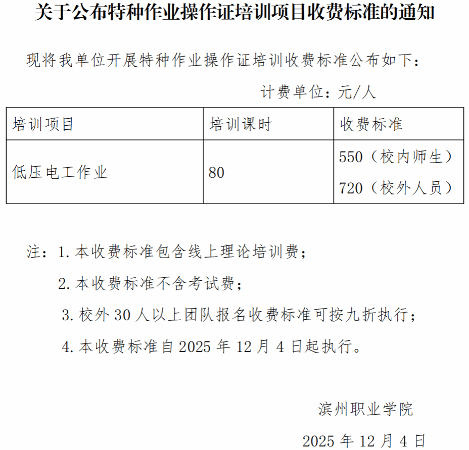 关于公布特种作业操作证培训项目收费标准的通知