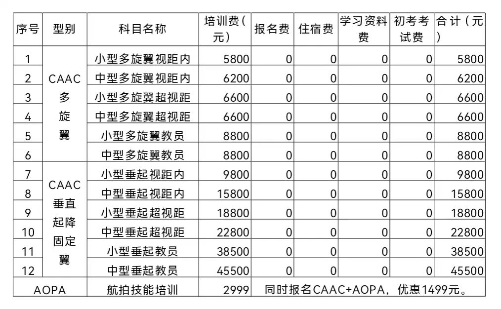 机电工程学院与滨航无人机培训中心联合培养无人机驾驶员收费标准公示